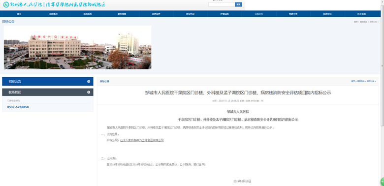 2019年5月15日,我公司成功中標(biāo)“鄒城市人民醫(yī)院消防安全評估項(xiàng)目”。